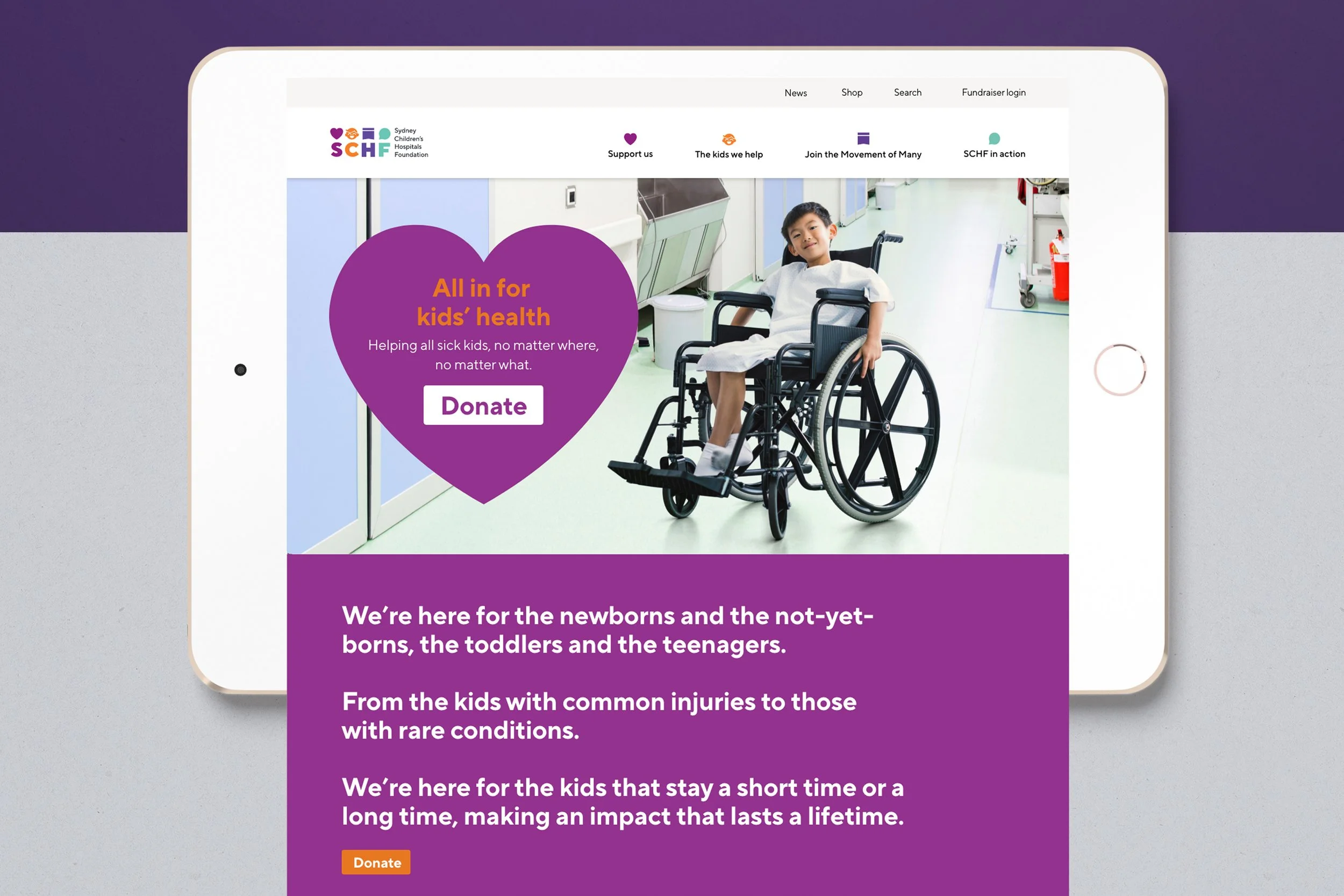 After expanding its remit to fundraise for two major paediatric hospitals and three health services in NSW, the Foundation needed a dynamic new brand to reflect both its increased footprint and its ambition to be a mechanism for powerful change in kids’ health.
